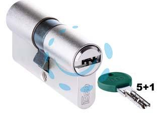 corpo nichelato - versione meccanica - fino a 14 pin di codifica - dispositivi anti-trapano su entrambe le estremità del corpo del cilindro e del barilotto - CAMMA DIN 30° - perni superiori in inox - vite di fissaggio - 5 chiavi + 1 cantiere
