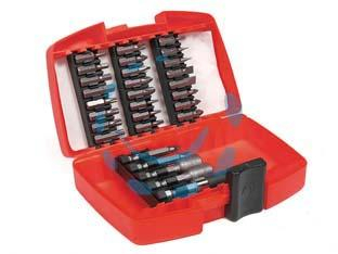 assortimento inserti mm.25 - acciaio cromo vanadio - lunghezza inserti mm 25 - composizione inserti lunghezza mm.25: T3,T4, T5, T6, T7, PH1, PH2, PH3x2 pz., TX25, TX27, TX30, TX40, PZ0, PZ1, PZ2, PZ3, TT10, TT15, TT20, H3, H4, H5, H6 - composizione inserti lunghezza mm.50: PZ2, PH2 - portainserti mm 48: H8,H10 - prolunga mm.80