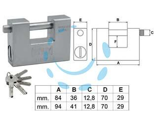 LUCCHETTO RETTANGOLARE BLINDATO UL20 - mm.84 (UL20.00E3.0000)
