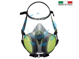 semimaschera pronto all'uso, riutilizzabile, senza necessità di manutenzione o sostituzione dei filtri - protezione A1P2 R D - adatta per verniciatura - una volta esaurita la capacità filtrante del disponsitivo, si sostituisce interamente - la forma della semimaschera garantisce una tenuta ottimale evitando punti di pressione sul viso e assicura un'ampia visuale e una bassa interferenza con il campo visivo, grazie al collocamento ribasato dei filtri e alla loro ridotta sporgenza - sistema di aggancio/sgancio rapido ed elastici scorrevoli che permettono di togliere ed abbassare la semimaschera senza rimuovere la testiera - il sistema di aggancio/sgancio può essere disattivato - il materiale filtrante è protetto da una rete esterna che ne previene l'usura evitando l'assorbimento di schizzi e la formazione di pelucchi e impedisce il rilascio di fibre - made in Italy