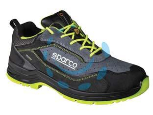 tomaia in pelle scamosciata traforata e rinforzi in microfibra - fodera interna tessuto 3D microforato traspirante - soletta removibile antistatica in poliuretano a bassa densità con termoformatura ergonomica - soletta antiperforazione in fibra tessile perforazione-zero ultraleggera (PS - chiodo Ø 3,0 mm) - puntale in vetroresina amagnetico, isolante, resistente a 200J - suola antistatica antiscivolo iniettata in poliuretano bi-densità con assorbimento di energia sul tallone + LG - secondo paio lacci colorati incluso - colore: grigio scuro - giallo fluo