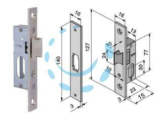 SERRATURE DA INFILARE PER MONTANTI CATENACCIO E SCROCCO 350 - mm.15 interasse mm.73.7 (350)