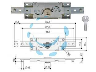 per serrande avvolgibili, scatola in acciao zincato, catenacci dritti, cilindro ø mm.25 in ottone, movimentazione con chiave sia interna che esterna, in dotazione: 2 chiavi punzonate
