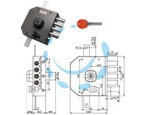 SERRATURA QUINTUPLICE APPLICARE S/SCROCCO DOPPIA MAPPA 57172 (EX57130) - mm.64 DX (57172601)