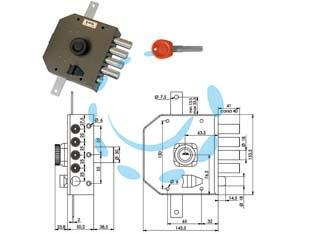 SERRATURA QUINTUPLICE DA APPLICARE SENZA SCROCCO A POMPA JM435 - mm.63 DX