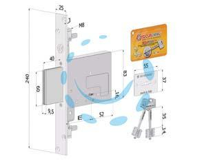 scatola frontale e copritoppa in acciaio zincato - catenaccio movimentato da chiave - brevetti contro la manipolazione - serratura con chiave doppia mappa SECURMAP14 brevettata a duplicazione protetta - in dotazione: 1 piastrina 4901XZB, 2 chiavi e 1 security card